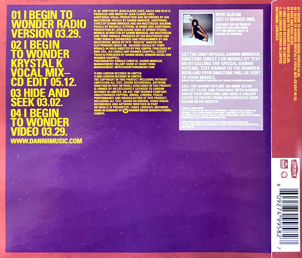 Dannii Minogue Maxi CD I Begin To Wonder