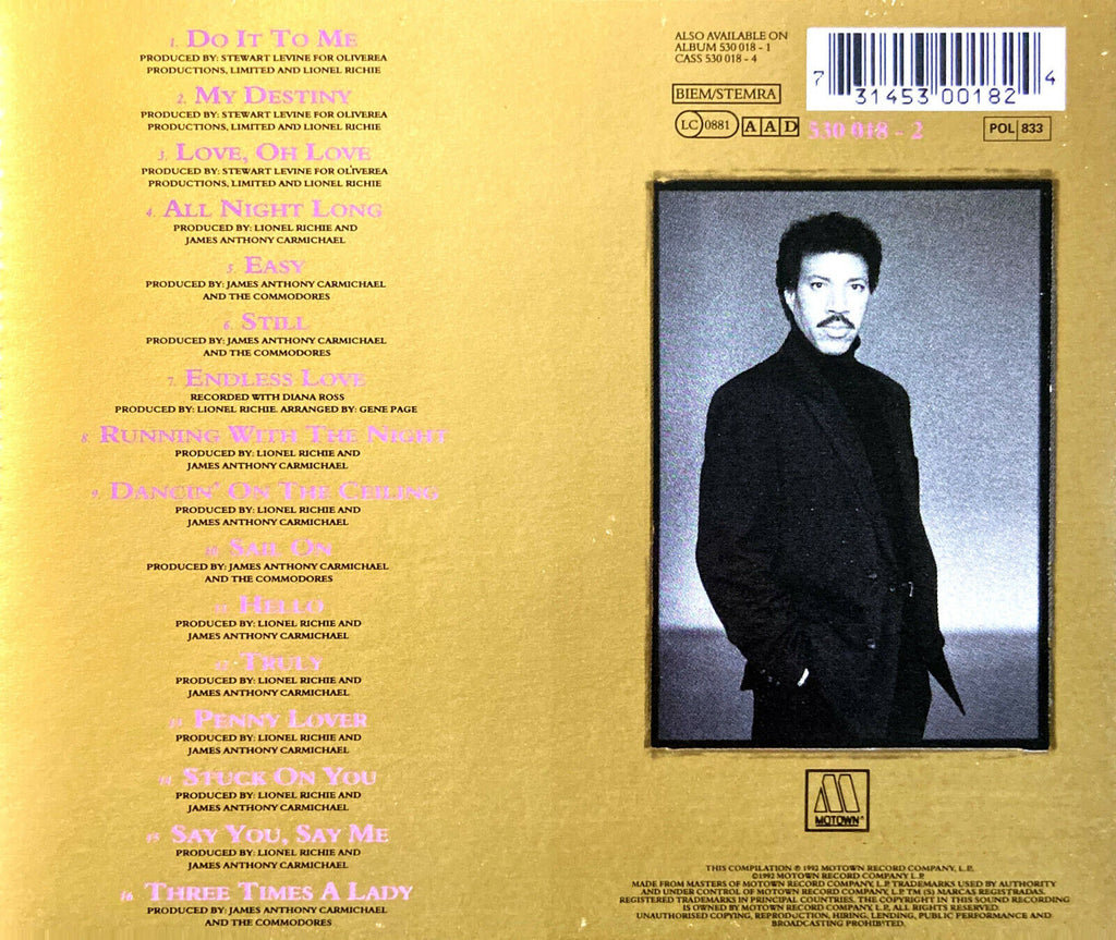 Lionel Richie CD Back To Front - Europe (EX/EX)