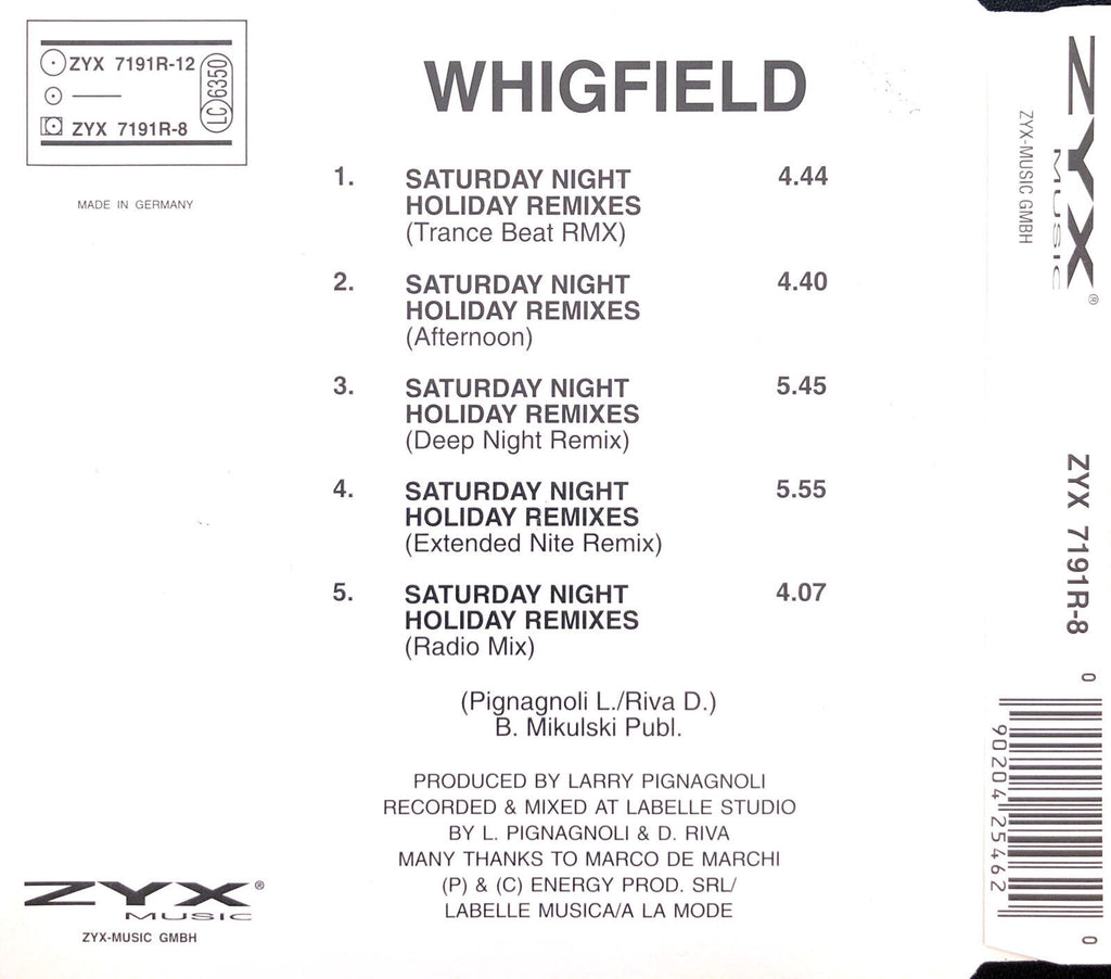 Whigfield ‎Maxi CD Saturday Night (Holiday Remixes) - Germany (EX+/EX+)